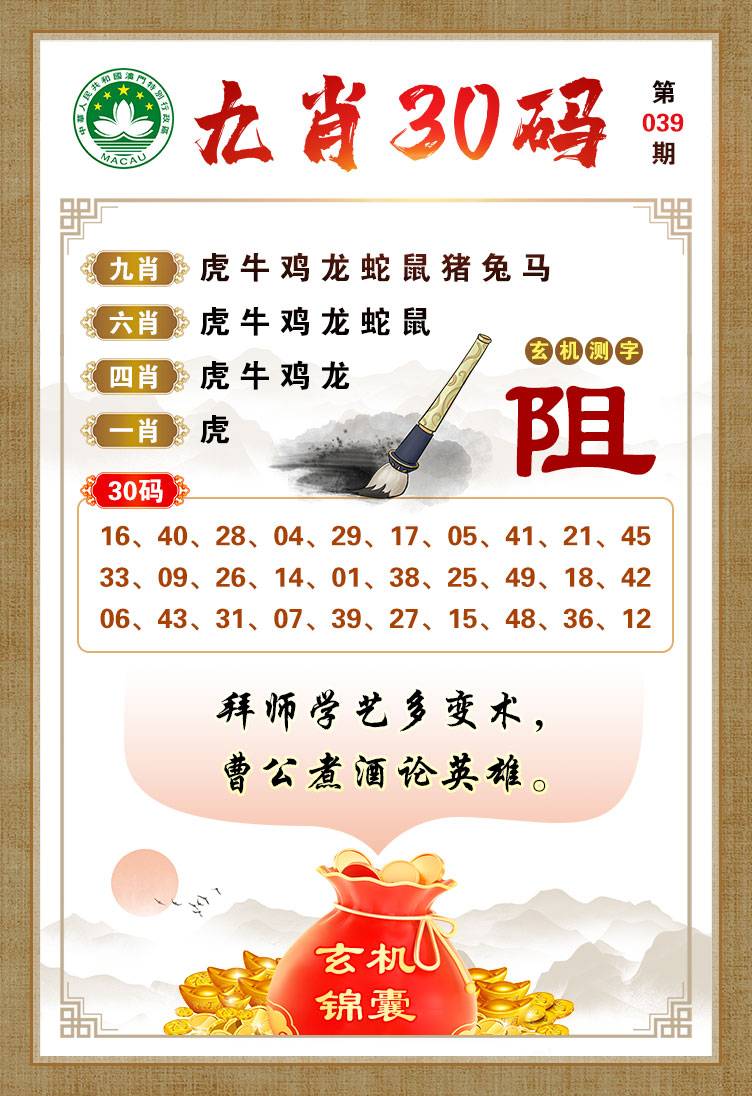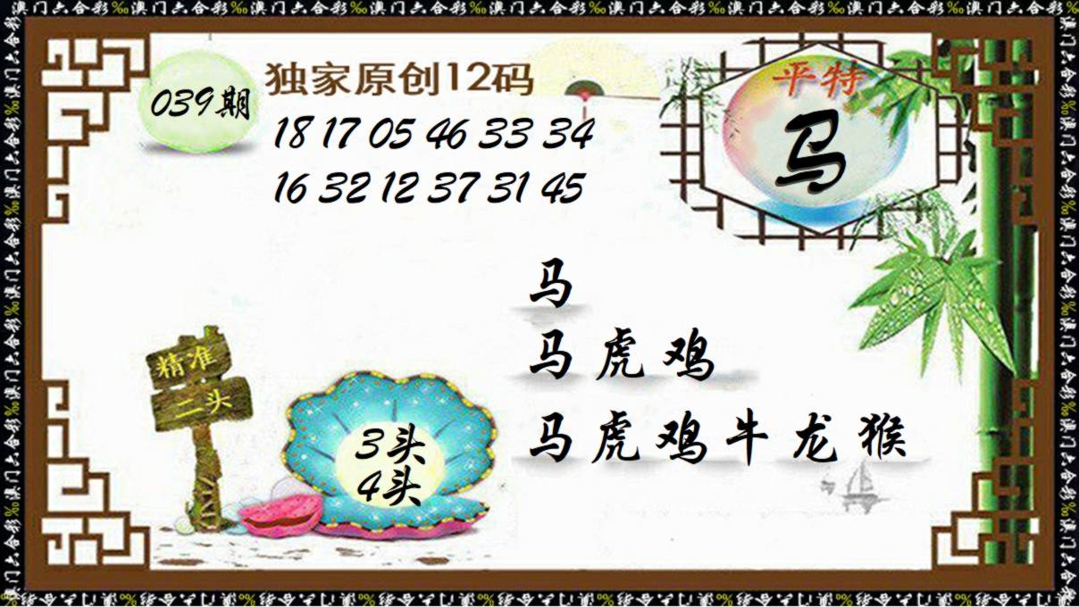 039期:包租公→推荐⑥肖12码→开?00准